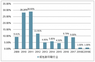 2019年中國(guó)紙包裝印刷行業(yè)市場(chǎng)規(guī)模同比增速