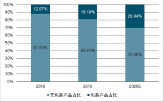 2010-2020年休閑鹵制品包裝產品銷售占比圖