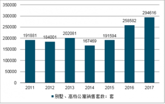 2011-2017年全國別墅、高檔公寓銷售套數(shù)走勢(shì)圖
