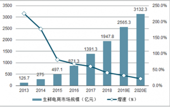 2013-2020年中國生鮮電商市場市場規模統計及增長預測