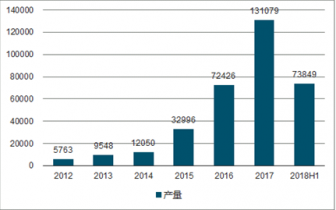 2018年前三季度,工業機器人領域繼續展現出較高景氣度,根據調查數據顯示,2013年中國工業機器人產量約為9548臺,同比增長65.68%,到2017年中國工業機器人產量達到13.1萬臺,增長68.1%;2018年上半年中國工業機器人產量為7.38萬臺,同比增長23.9%。