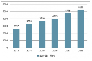 2013-2018年我國冷庫容量走勢