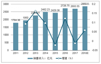 2011-2018年中國電力行業銷售收入增長