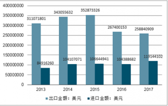年份 | 出口數(shù)量(米) | 出口金額(美元) | 進口數(shù)量(米) | 進口金額(美元) |