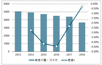 2013-2018年中國啤酒產(chǎn)量及增長走勢