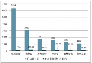 2017年歐派家居、索菲亞分別居于定制企業門店數、單店提貨額排位榜首,為業內銷路最廣、單店效益最高的兩家企業;如上述所示,歐派家居、索菲亞分別為定制櫥柜、定制衣柜市場中的龍頭。