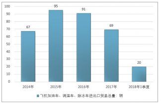 2016年我國飛機加油車、調(diào)溫車、除冰車進出口貿(mào)易總量91輛 ,2017年進出口貿(mào)易總量69輛 ;2019年1季度進出口貿(mào)易總量20輛 。
