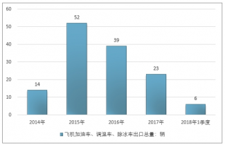 2016年我國飛機加油車、調(diào)溫車、除冰車出口總量39輛 ,2017年出口總量23輛 ;2019年1季度出口總量6輛 。