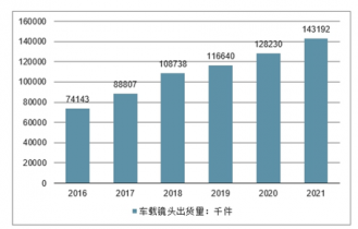 2016-2021年全球車載鏡頭出貨量走勢(shì)