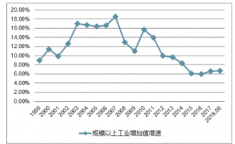 1999-2018年上半年規(guī)模以上工業(yè)增加值增速走勢