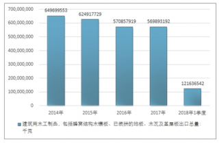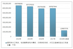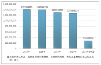 2016年我國(guó)建筑用木工制品,包括蜂窩結(jié)構(gòu)木鑲板、已裝拼的地板、木瓦及蓋屋板進(jìn)出口貿(mào)易總額1296543399美元,2017年進(jìn)出口貿(mào)易總額1264846324美元;2019年1季度進(jìn)出口貿(mào)易總額278337676美元。