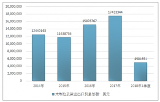 2016年我國木制柱及梁進(jìn)出口貿(mào)易總額15076767美元,2017年進(jìn)出口貿(mào)易總額17433344美元;2019年1季度進(jìn)出口貿(mào)易總額4901651美元。