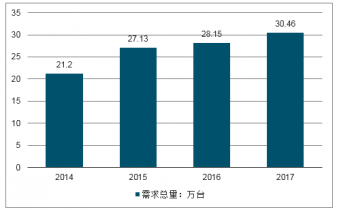 2017年我國國內繞線機需求總量為30.46萬臺,需求數量同比增長8.21%; 國內市場規模為34.11億元,市場規模同比增長2.68%。