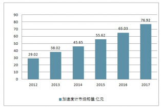 2012-2017年中國加速度計行業市場規模走勢