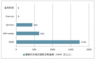 新增裝機(jī)風(fēng)電機(jī)組前五制造商(5MW 及以上)
