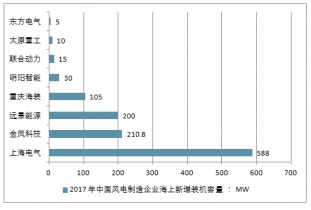 2017 年中國(guó)風(fēng)電制造企業(yè)海上新增裝機(jī)容量