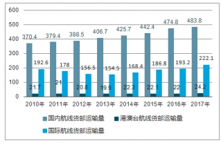 2010-2017年中國航空貨運周轉(zhuǎn)量及運輸量走勢
