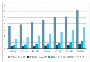 2011-2017年中國(guó)民航運(yùn)輸機(jī)場(chǎng)旅客吞吐量分區(qū)域