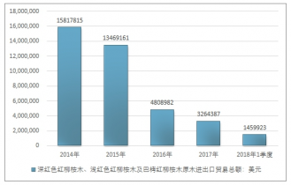 2016年我國深紅色紅柳桉木、淺紅色紅柳桉木及巴栲紅柳桉木原木進口總額4808982美元,2017年進口總額3264387美元;2019年1季度進口總額1459923美元。