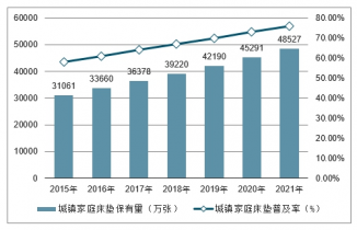城鎮(zhèn)家庭床墊保有量及城鎮(zhèn)家庭床墊普及率、