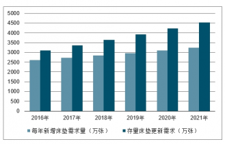 每年新增床墊需求量及存量床墊更新需求