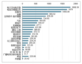 2017年中國股權(quán)投資市場投資行業(yè)分布(按投資金融:億元) |
