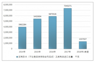 2016年我國(guó)壓制軟木(不論是否使用粘合劑壓成)及其制品進(jìn)口總量5875526千克,2017年進(jìn)口總量7343271千克;2019年1季度進(jìn)口總量1337027千克。
