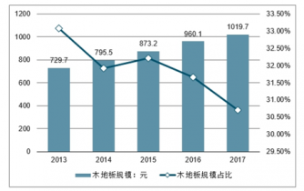 2013-2017年中國地板行業(yè)規(guī)模及占比情況