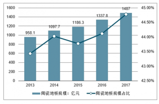 2013-2017年中國陶瓷地板行業規模及占比情況走勢