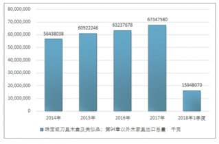 2016年我國珠寶或刀具木盒及類似品;第94章以外木家具出口總額304719697美元,2017年出口總額315871313美元;2019年1季度出口總額76770428美元。