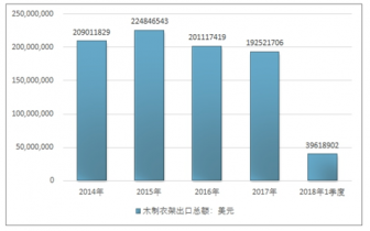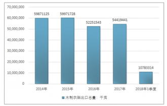2016年我國木制衣架出口總額201117419美元,2017年出口總額192521706美元;2019年1季度出口總額39618902美元。