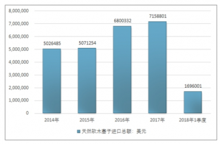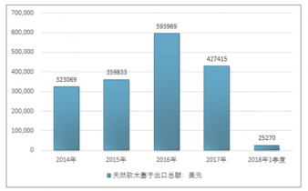 2014-2018年1季度其他天然軟木制品進(jìn)出口貿(mào)易總額走勢圖(單位:美元)