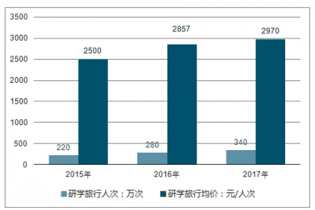 2015-2017年中國研學(xué)旅行人次及均價走勢