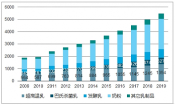 中國各乳制品市場(chǎng)規(guī)模變化