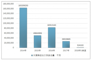 2014-2018年1季度木屑棒進(jìn)口貿(mào)易總額走勢(shì)圖(單位:美元)