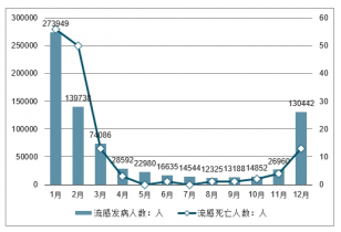 2019年各月流感發(fā)病及死亡人數(shù)情況