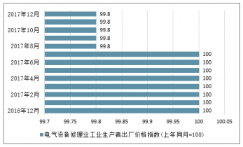 2017年12月全國電氣設(shè)備修理業(yè)工業(yè)生產(chǎn)者出廠價格指數(shù)