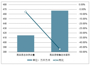 2017年商品房總體供應(yīng)量為414.85萬平方米同比減少7.66%,商品房銷售總體面積467.27萬平方米同比減少47.02%,