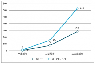 2017-2018年1-7月中國各級城市房地產(chǎn)流拍情況