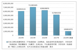 2016年我國已加工碑石或建筑用石(不包括板巖)及其制品,但品目6801的貨品除外;天然石料(包括板巖)制的鑲嵌石(馬賽克)及類似品,不論是否有襯背;天然石料(包括板巖)制的人工染色石料、石片及石粉進出口貿易總額6298190876美元,2017年進出口貿易總額5178041553美元;2019年1季度進出口貿易總額1066816374美元。
