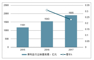 2015-2017年便利店行業(yè)銷售規(guī)模及增長走勢