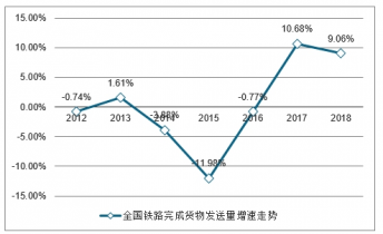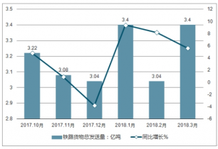 2017-2018年全國鐵路貨物總發(fā)送量及增長走勢