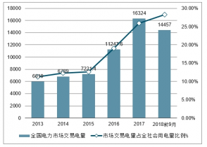 電力市場化是大勢所趨,電量市場化比例提升,但折價收窄。2017 年 1-9 月, 市場化交易電量占電網(wǎng)銷售電量比重(即銷售電量市場化率)達到 31.3%;煤 電上網(wǎng)電量平均電價(計劃與市場電量綜合平均電價)為 0.3650 元/千瓦時, 市場交易(含跨區(qū)跨省送出交易)平均電價 0.3180 元/千瓦時。2018 年 1-9 月, 市場交易電量占電網(wǎng)企業(yè)銷售電量比重為 34.5%較去年同期相比,銷售電量市 場化率提升 3.2 個百分點。2018 年 1-9 月,煤電上網(wǎng)電量平均電價為 0.3640 元/千瓦時,市場交易平均電價為 0.3368 元/千瓦時,市場交易電價有所上升。 從趨勢上看,2018 年市場交易電量占比繼續(xù)提升,但折扣幅度減少,整體上網(wǎng) 電價平穩(wěn)。我們判斷在經(jīng)濟下行背景下,無論燃煤標桿電價還是市場電讓利幅 度,短期惡化風險相對有限,利好電價企穩(wěn)。
