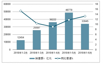 2018年1-6月商品房銷售金額及增速