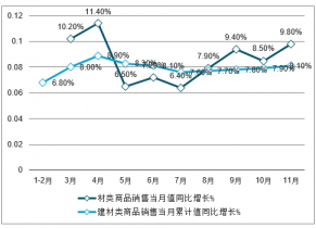 2019年1-11月建材類商品銷售及增長(zhǎng)走勢(shì)