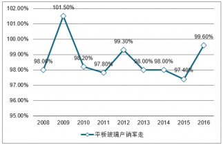 2008-2016年中國(guó)平板玻璃產(chǎn)銷率走勢(shì)