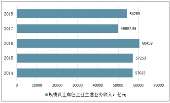 2014-2018年中有色國金屬主營業(yè)務收入走勢