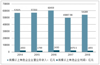 2014-2018年中有色國金屬主營業(yè)務收入及企業(yè)利潤情況