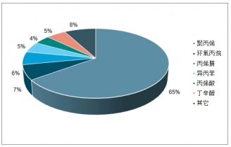 丙烯的下游需求主要包括聚丙烯、環(huán)氧丙烷、丙烯腈、異丙苯、丙烯酸、丁辛醇等。2017年全球丙 烯消費量為 1.06 億噸,其中第.一大下游應用聚丙烯占據(jù) 65%,環(huán)氧丙烷和丙烯腈分別占 7%和 6%, 位列第二和第三大下游應用。