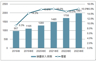 2018-2023年重防腐涂料行業(yè)銷售收入及增長率變化預(yù)測(億元)